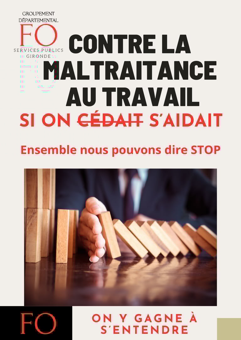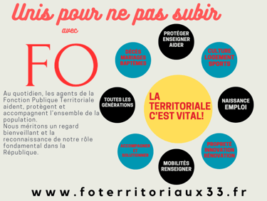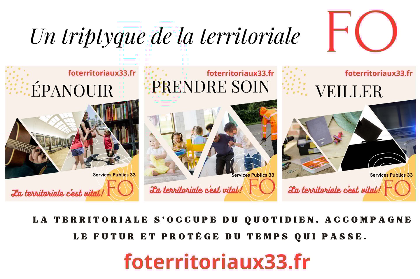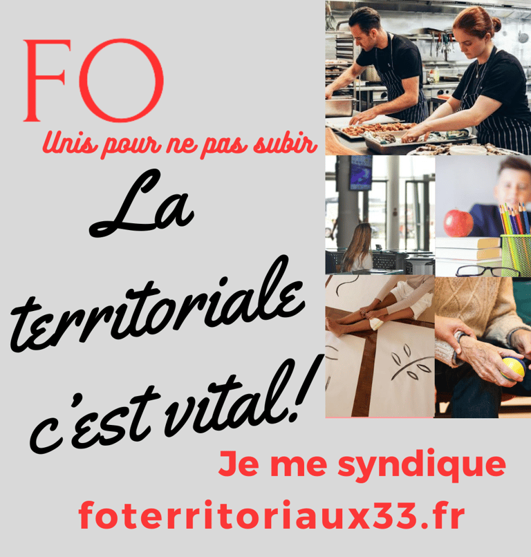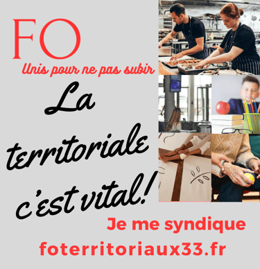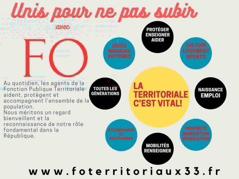 Dans le cadre de notre engagement, de la défense de nos valeurs et de la continuité avec nos principes, les syndicats Force Ouvrière des Services Publics de la Gironde poursuivent leur campagne de sensibilisation au collectif et à l'unité des agents de la Fonction Publique Territoriale avec cette affiche.